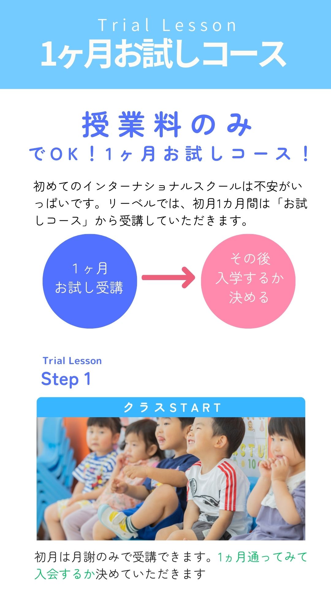 どのコースも必ず1ヶ月お試しコースを行っています。